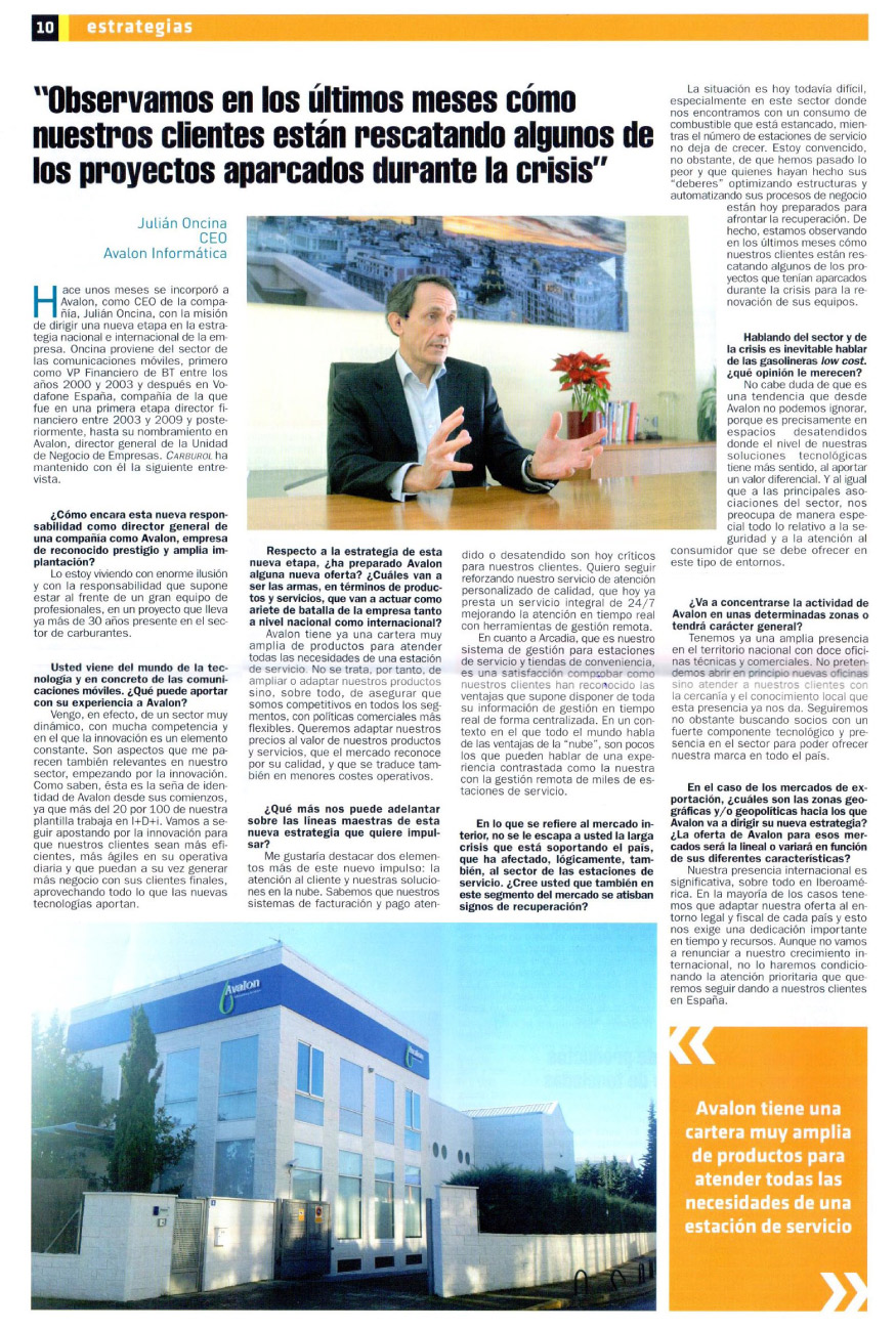 Julián Oncina, Director General de Avalon, responde a las preguntas de Carburol en el número de diciembre de la revista, donde repasa las líneas de actuación de la Compañía y comenta la actualidad del sector.